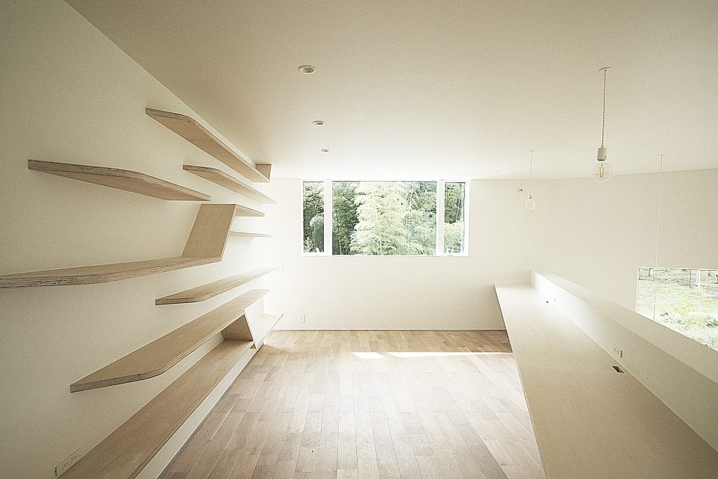 「House H」のためにデザイン製作した本棚の事例です。本棚が、ただの収納ではなく、空間にアート的な要素を加えるような独特なアイテムとなりつつその他の空間と上手く調和するよう工夫しました。本棚自体が本を飾るための「アート作品」として機能し、読書空間を単なる物理的な収納スペースから、視覚的にも感覚的にも豊かな場所へと変貌させ、居住者が本とともに過ごす時間をより特別なものにすることを意図しています。