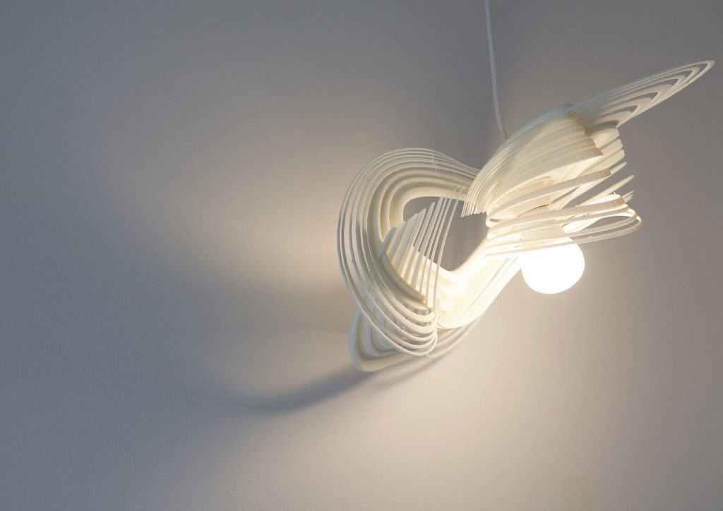 3Dプリンタを活用して製作したプロダクトの事例です。 Orbit Lampshade は、コンピュテーショナルデザインとデジタルファブリケーションを融合して、製作しています。このプロセスは、複雑な形状や独自の構造を実現することを可能にし、従来の製造方法では難しいデザインを生み出すことができます。デジタル技術を活用することで、ランプシェイドは軽量ですが強度を保つことができます。光の拡散や色調、形状の変化などを意図的にデザインすることができ、住空間に調和した美しい空間を作り出すことができます。さらに、個々のニーズに応じたカスタマイズや生産が可能となり、ユニークなデザインが提供されることで、住む人々にとってより魅力的な選択肢が増えます。そして、住居環境をより快適で、持続可能なものにするのではないかと考えます。