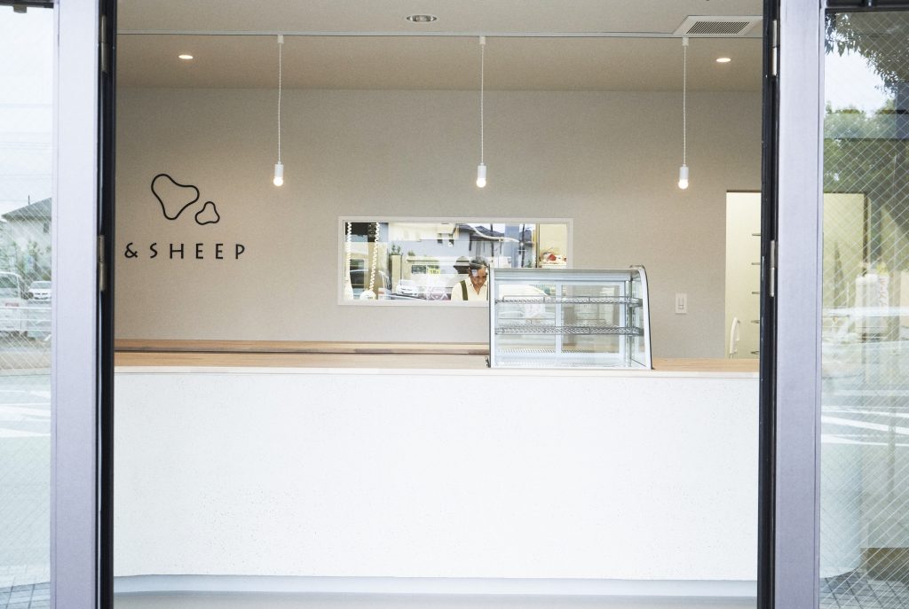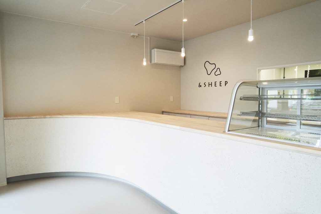 店の中心に、緩やかなアールを描く長いカウンターを配置し、店内に広がりを持たせた。デザインを主張しすぎないシンプルな内装を意識し、スイーツやパンの美味しさとかわいらしさが自然と引き立つ空間とした。 また、カウンターの奥にはキッチンが見える窓を設け、訪れたお客様がパティシエのライブ感ある姿を楽しめるようにした。。