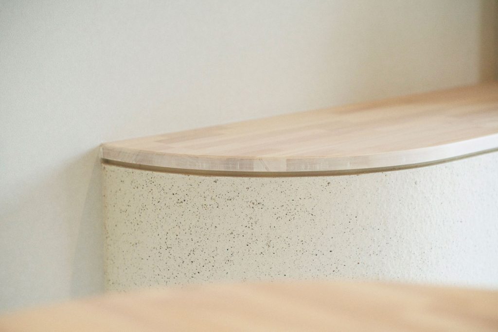A long counter with a gentle curve was placed at the center of the shop to create a sense of openness. The interior design was kept simple and understated to avoid overpowering the space, allowing the natural appeal of the sweets and bread to stand out.